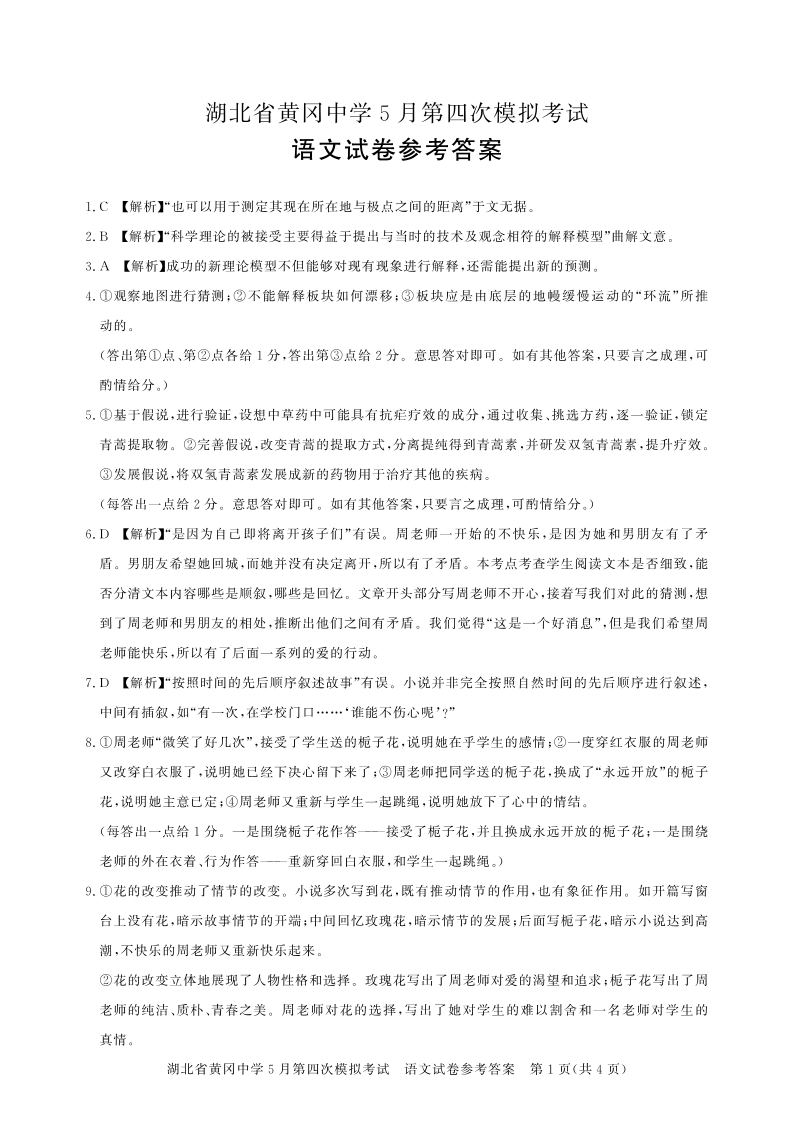 湖北省黄冈中学2024届高三5月四模语文答案