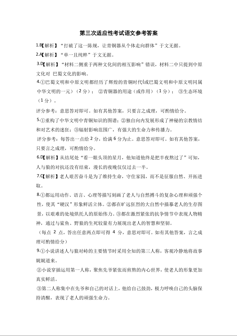 湖北省荆州中学2024届高三第三次适应考语文答案