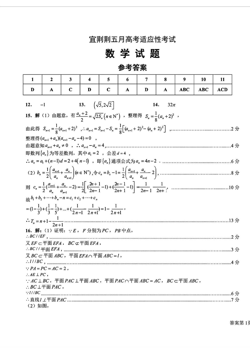 湖北省宜荆荆2024届高三下学期五月适应考数学答案