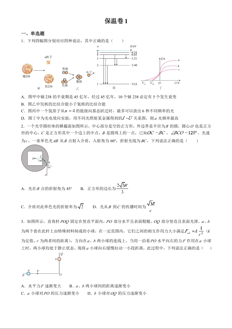 湖南省长郡中学2024届高三下学期6月保温测试物理+答案