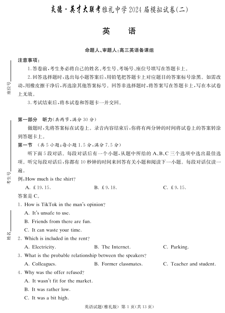Copyright © 2025 名校考试研题中心资源平台 All rights reserved 鲁ICP备2024123781号-1