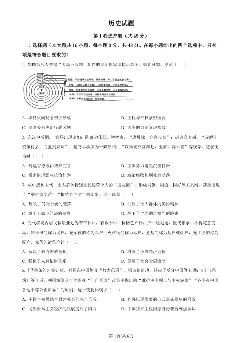安徽省1号卷A10联盟2024届高三最后一卷历史(原卷版)