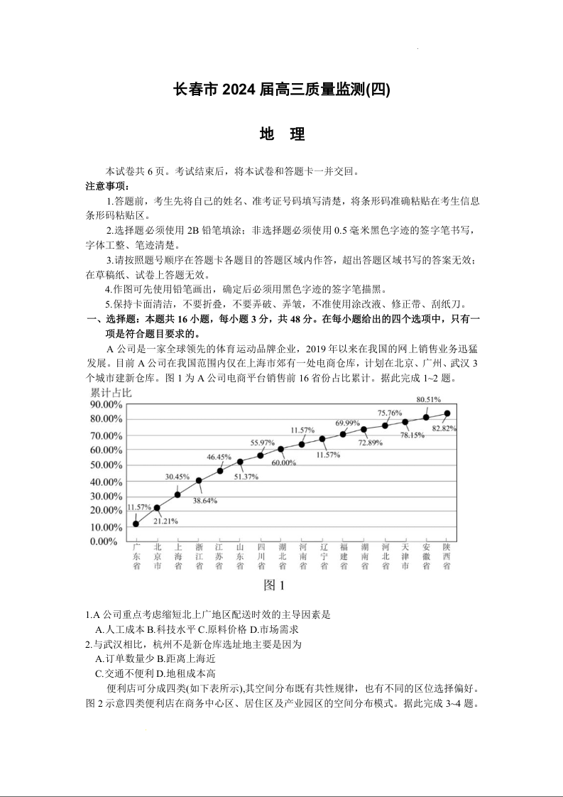 吉林省长春市2024届高三下学期四模考试地理+答案