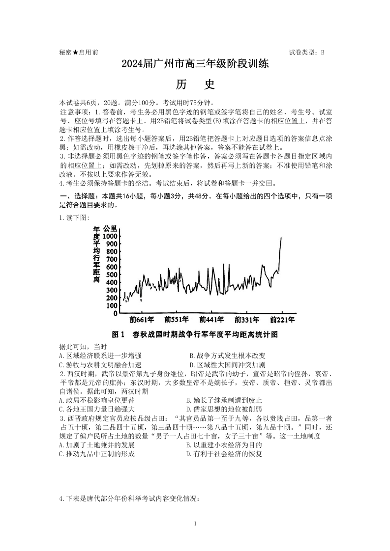 广东省广州市部分学校2024届高三8月阶段训练历史+答案