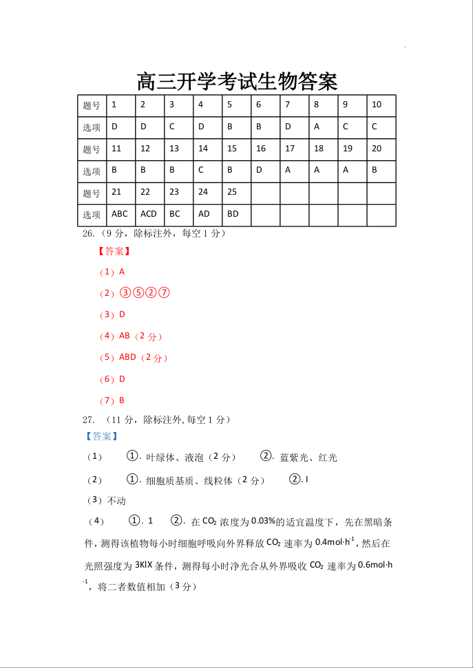 黑龙江省牡丹江市第三高级中学2024届高三上学期开学考试生物答案