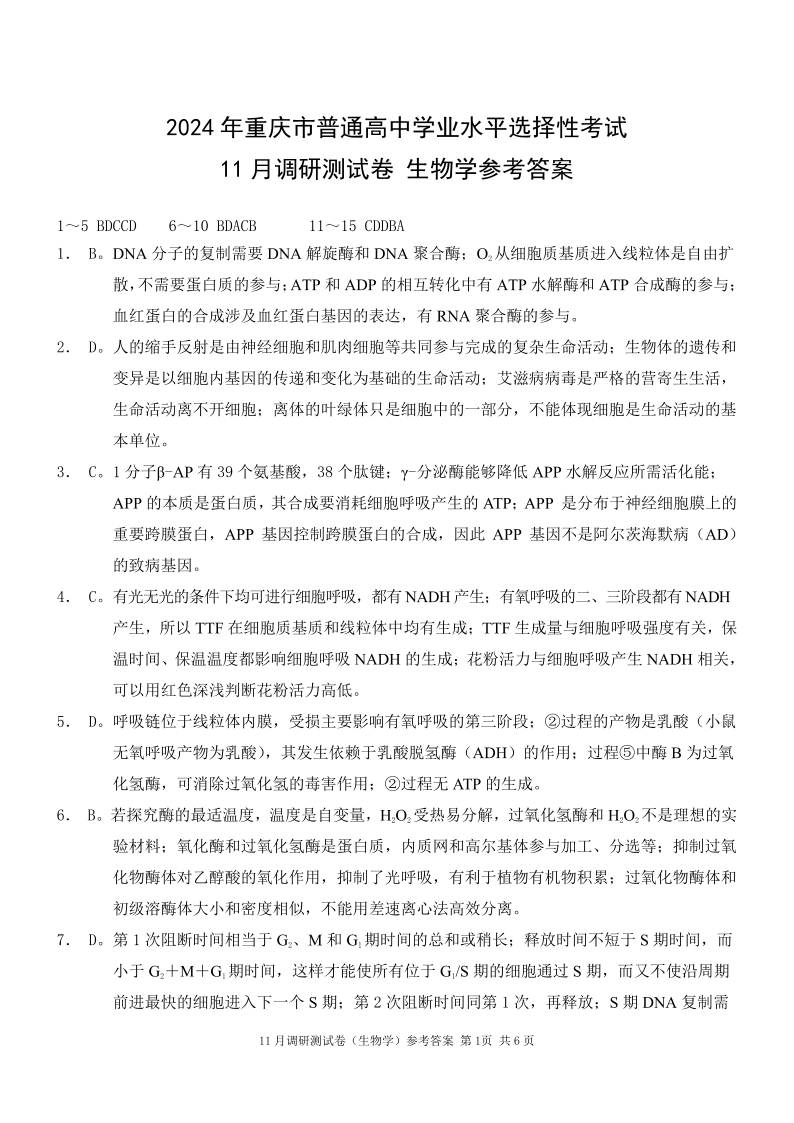 重庆康德半期统考2024年普通高等学校招生全国统一考试高三11月调研卷生物答案