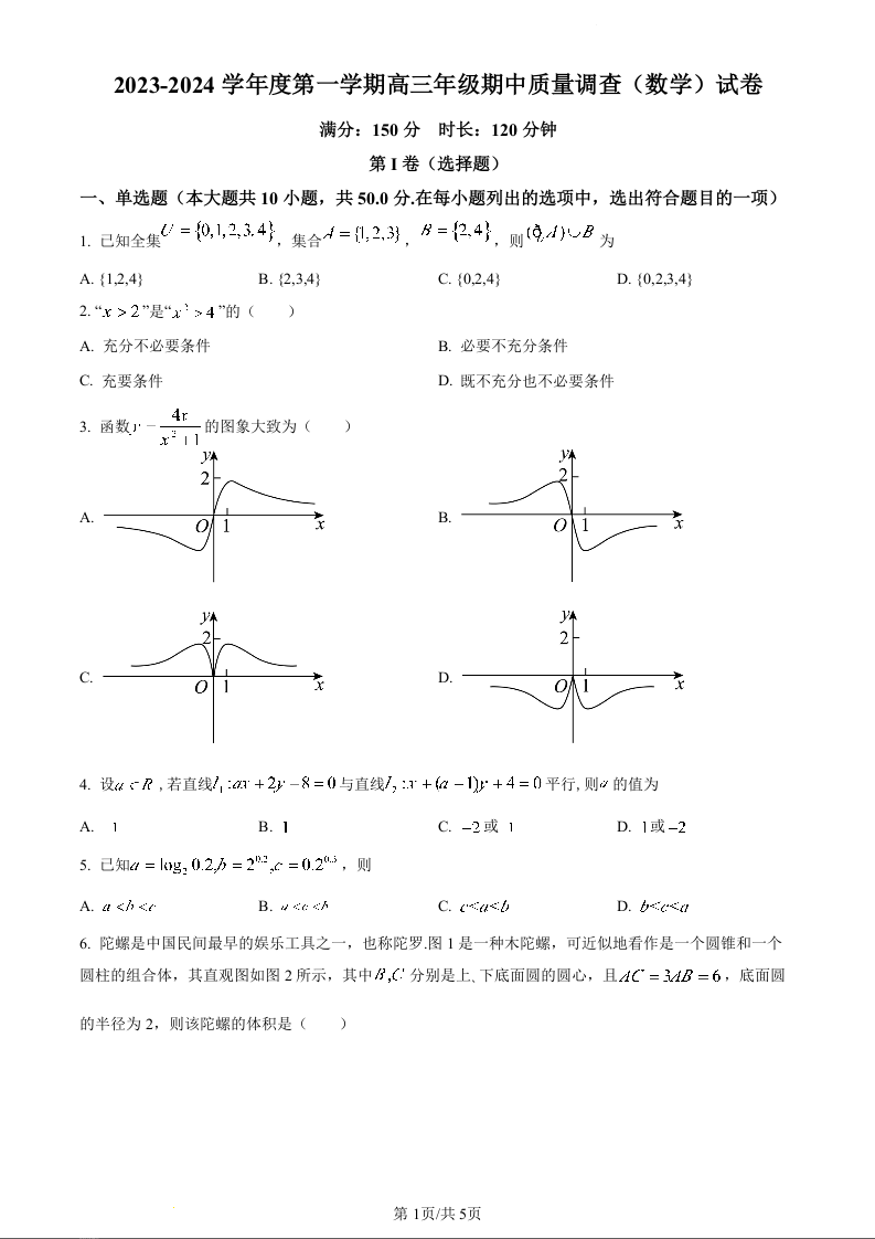 天津市实验中学滨海学校2024届高三上学期期中质量调查考试数学(原卷版)