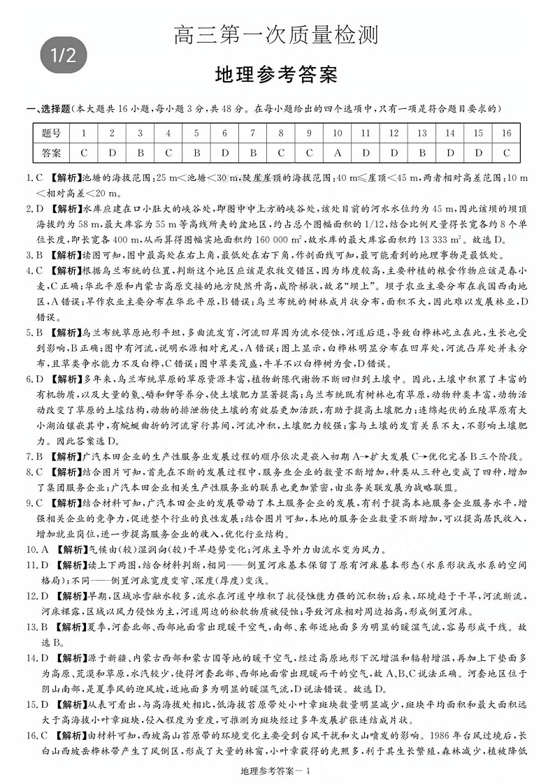 湖南省炎德英才大联考2024届高三上学期第一次质量检测地理答案