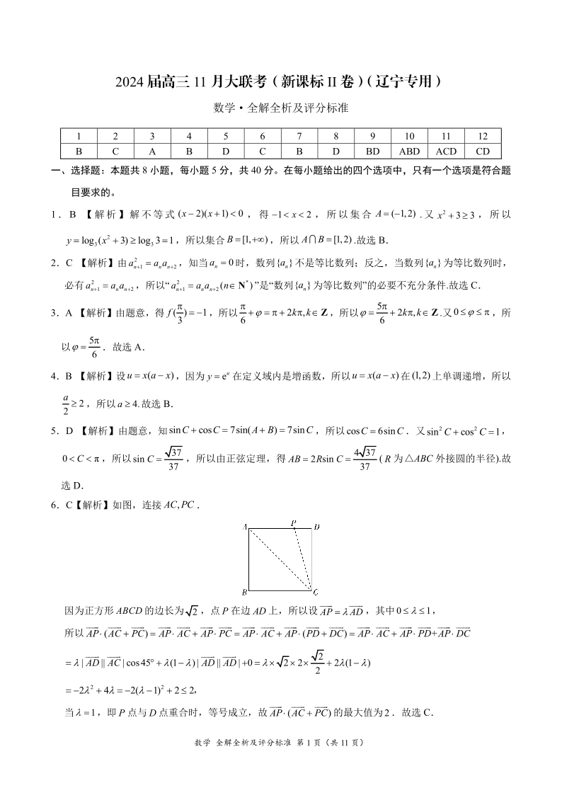 辽宁省2024届高三11月半期大联考(辽宁专用)数学答案