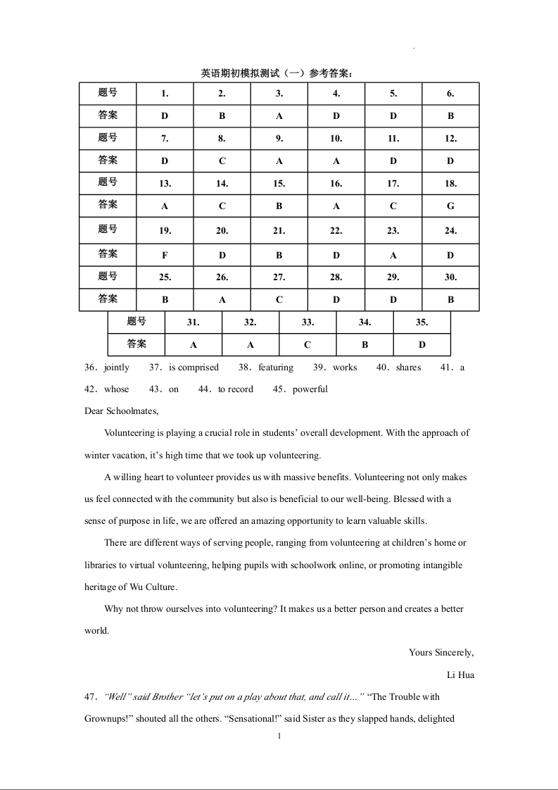 江苏省徐州市沛县2024届高三上学期期初模拟考(一)英语答案