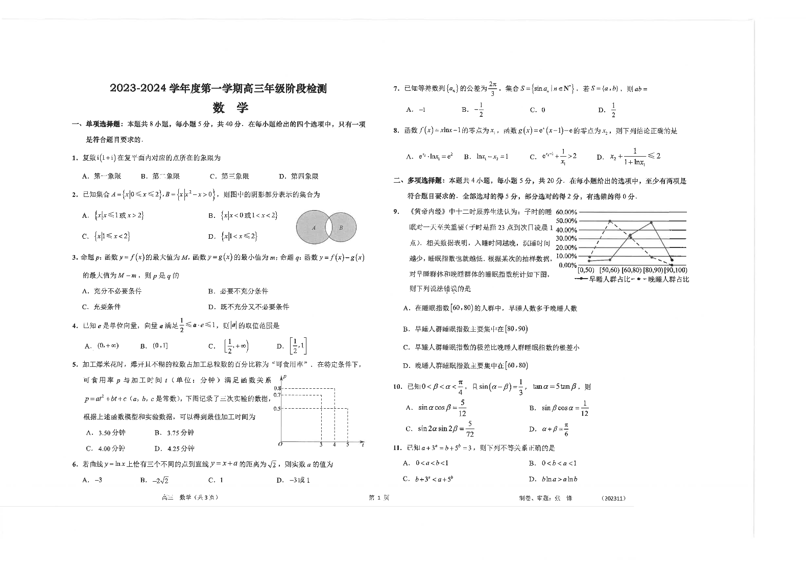 江苏省南通市海安市2024届高三上学期11月期中考试数学+答案