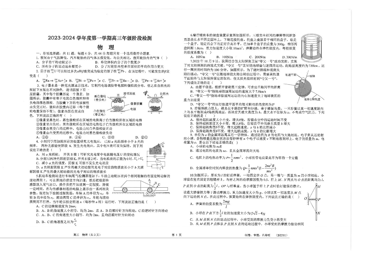 江苏省南通市海安市2024届高三上学期11月期中考试物理+答案