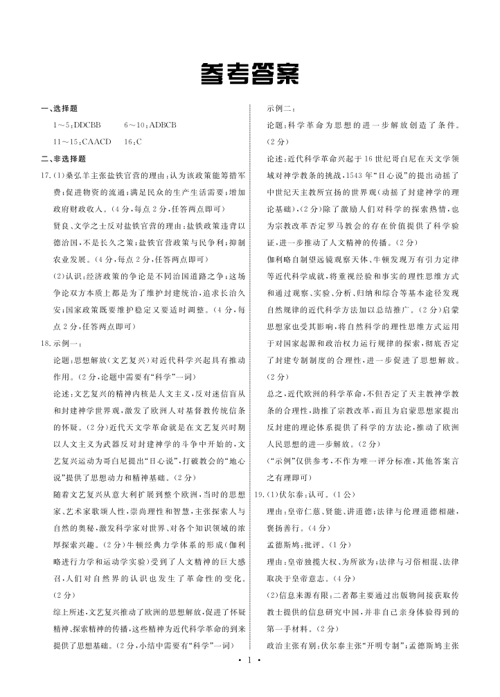 河北省衡中同卷2024届高三上学期11月期中历史答案