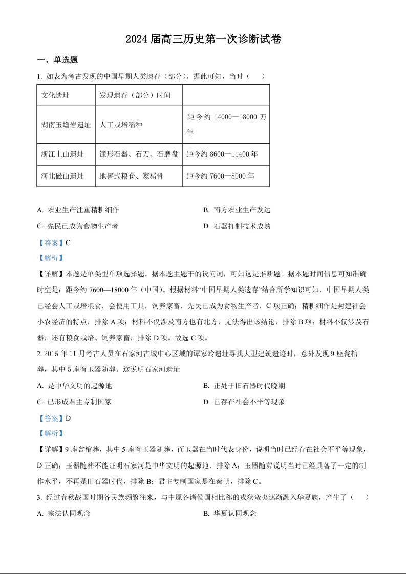 甘肃省武威市凉州区2024届高三上学期第一次诊断考试历史(精品解析版)