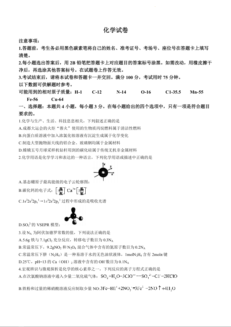 贵州省贵阳市第一中学2024届高考适应性月考(一)化学