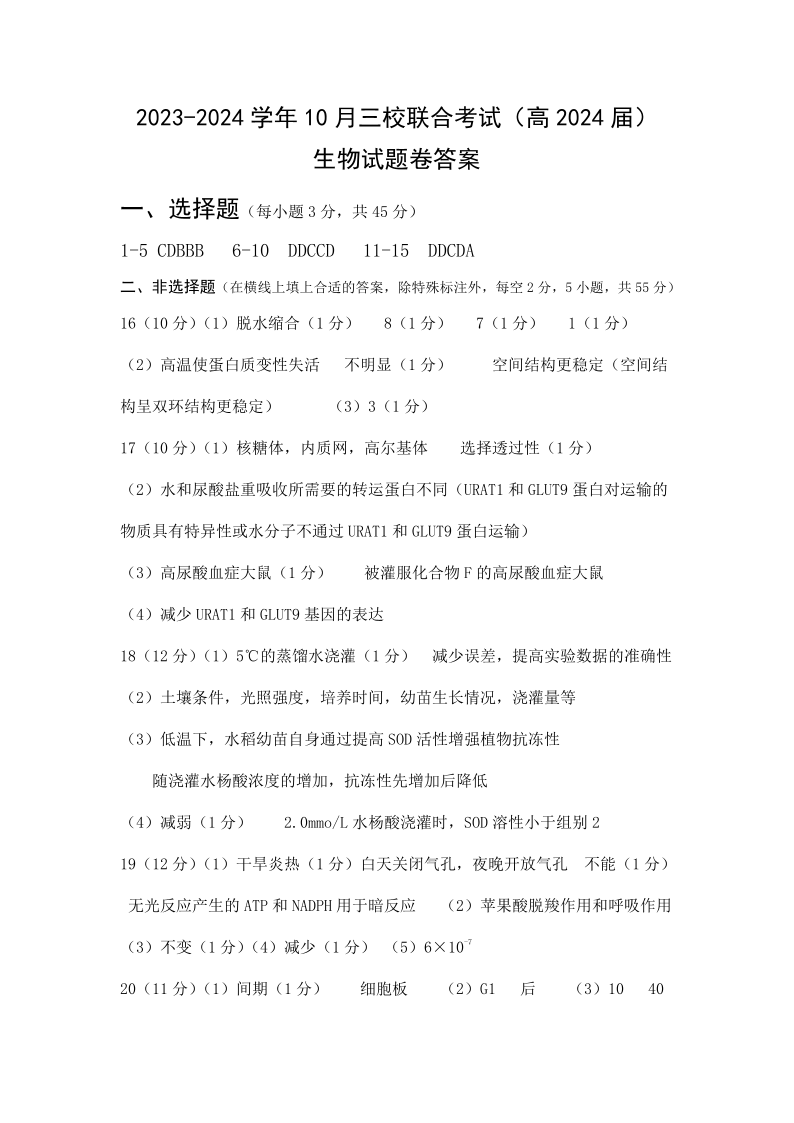 重庆市铜梁一中等三校2024届高三上学期10月联考生物答案