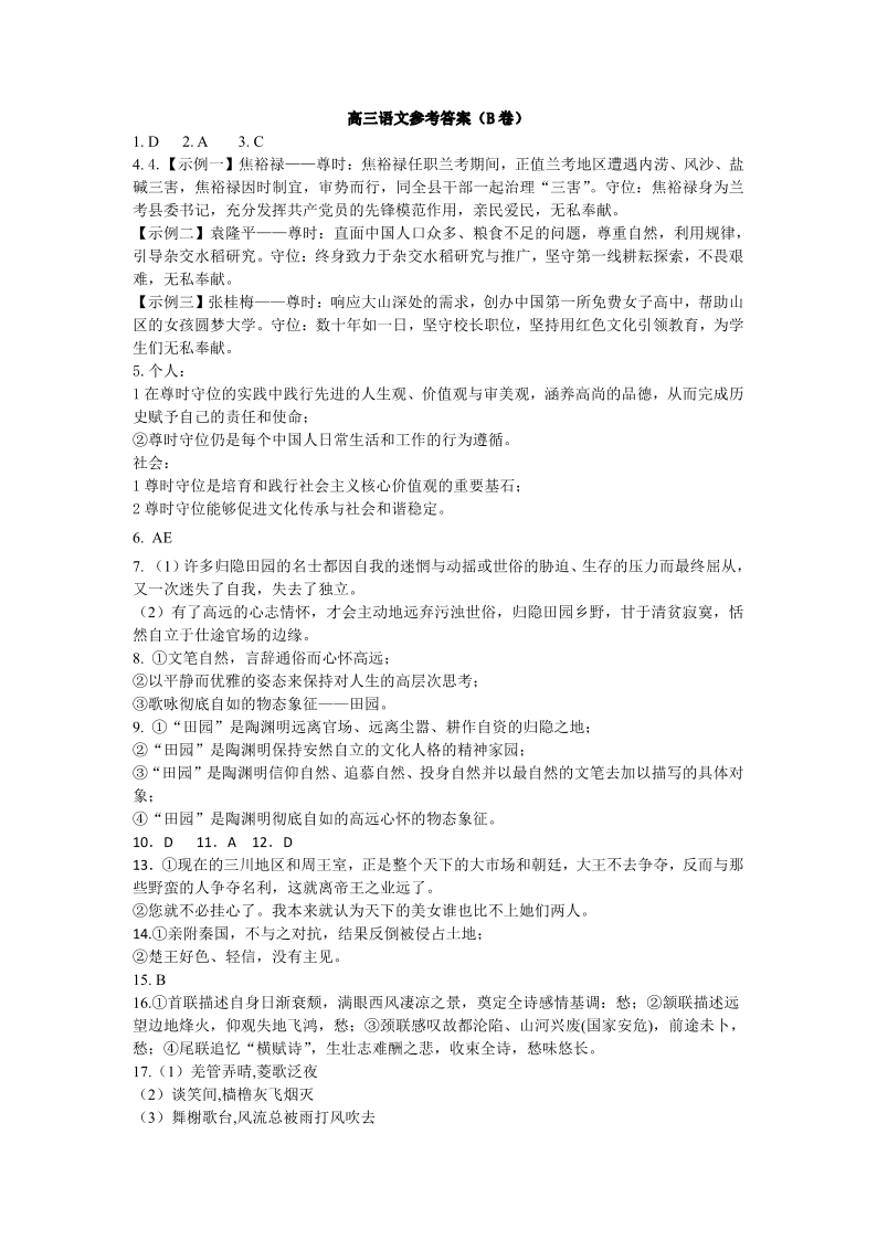 山西省运城市景胜学校(东校区)2024届高三上学期10月月考(B)卷语文答案