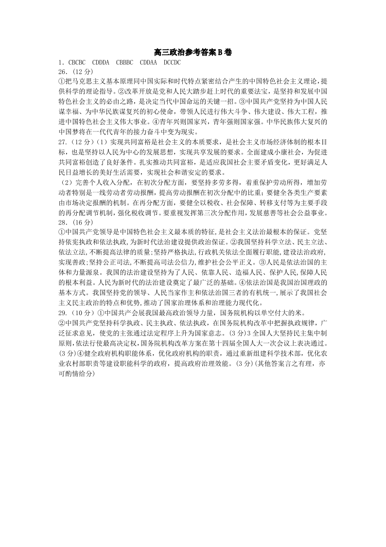 山西省运城市景胜学校(东校区)2024届高三上学期10月月考(B)卷政治答案