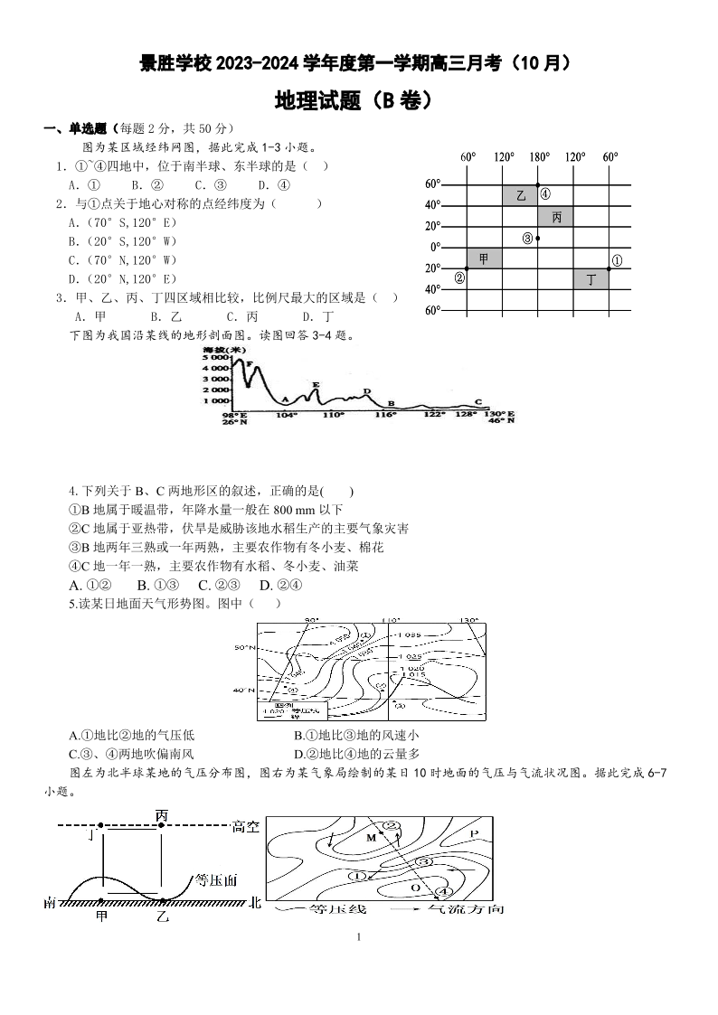 山西省运城市景胜学校(东校区)2024届高三上学期10月月考(B)卷地理