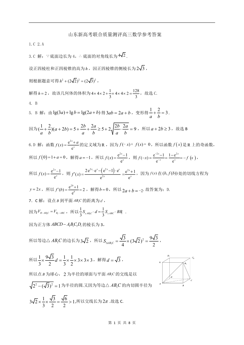 山东新高考联合质量测评2024届高三10月联考数学答案