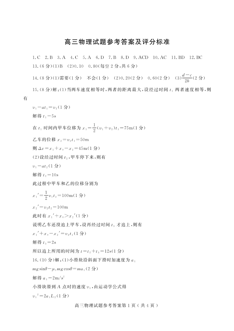 山东省潍坊市2024届高三上学期10月过程性检测物理答案