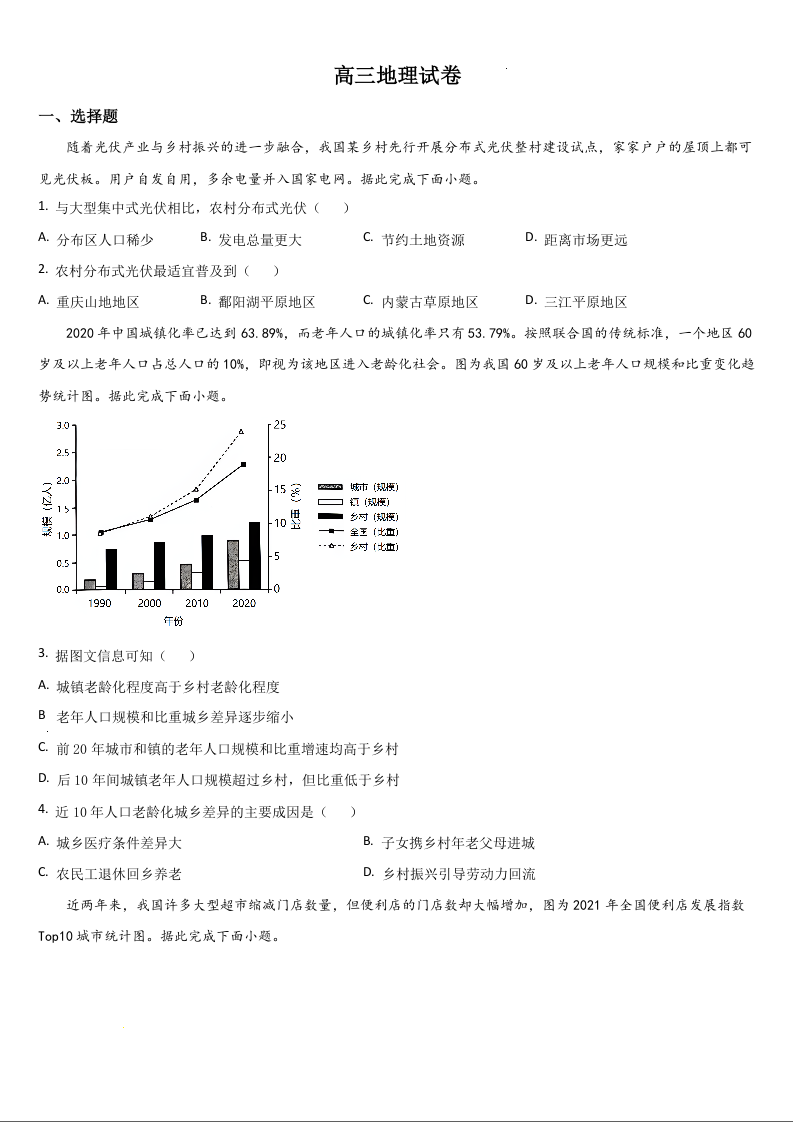 吉林省梅河口市第五中学2024届高三上学期开学地理+答案