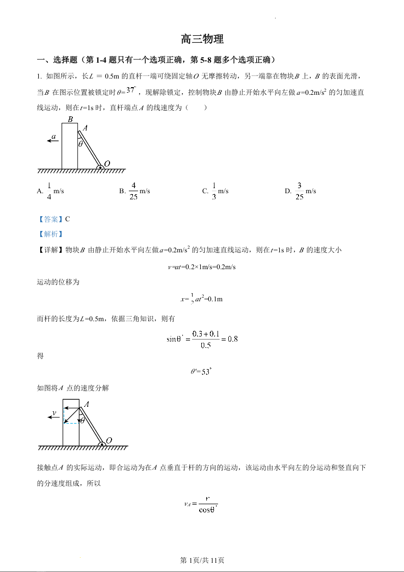 吉林省通化市梅河口市第五中学2024届高三上学期9月月考物理(精品解析版)