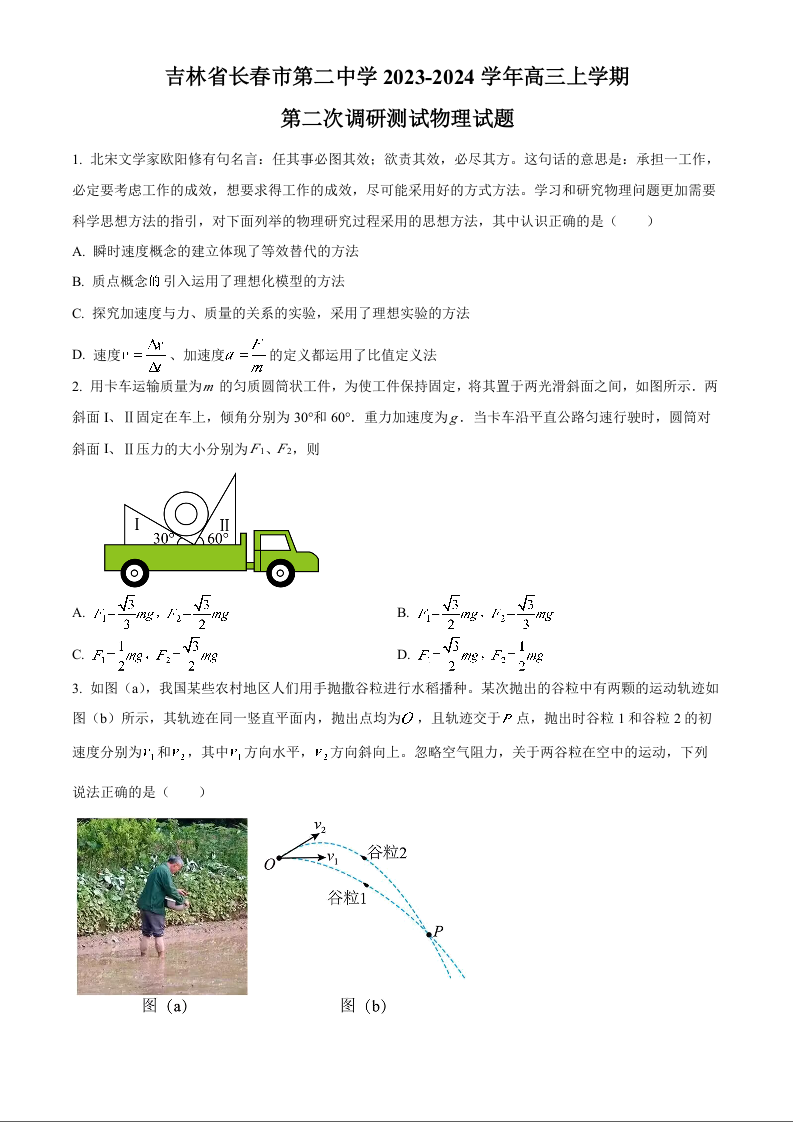 吉林省长春市第二中学2024届高三上学期10月月考物理+答案