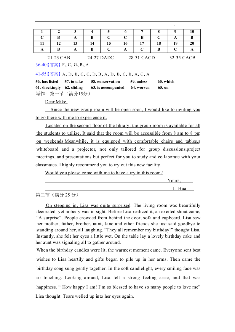 黑龙江省双鸭山市第一中学2024届高三上学期10月英语答案