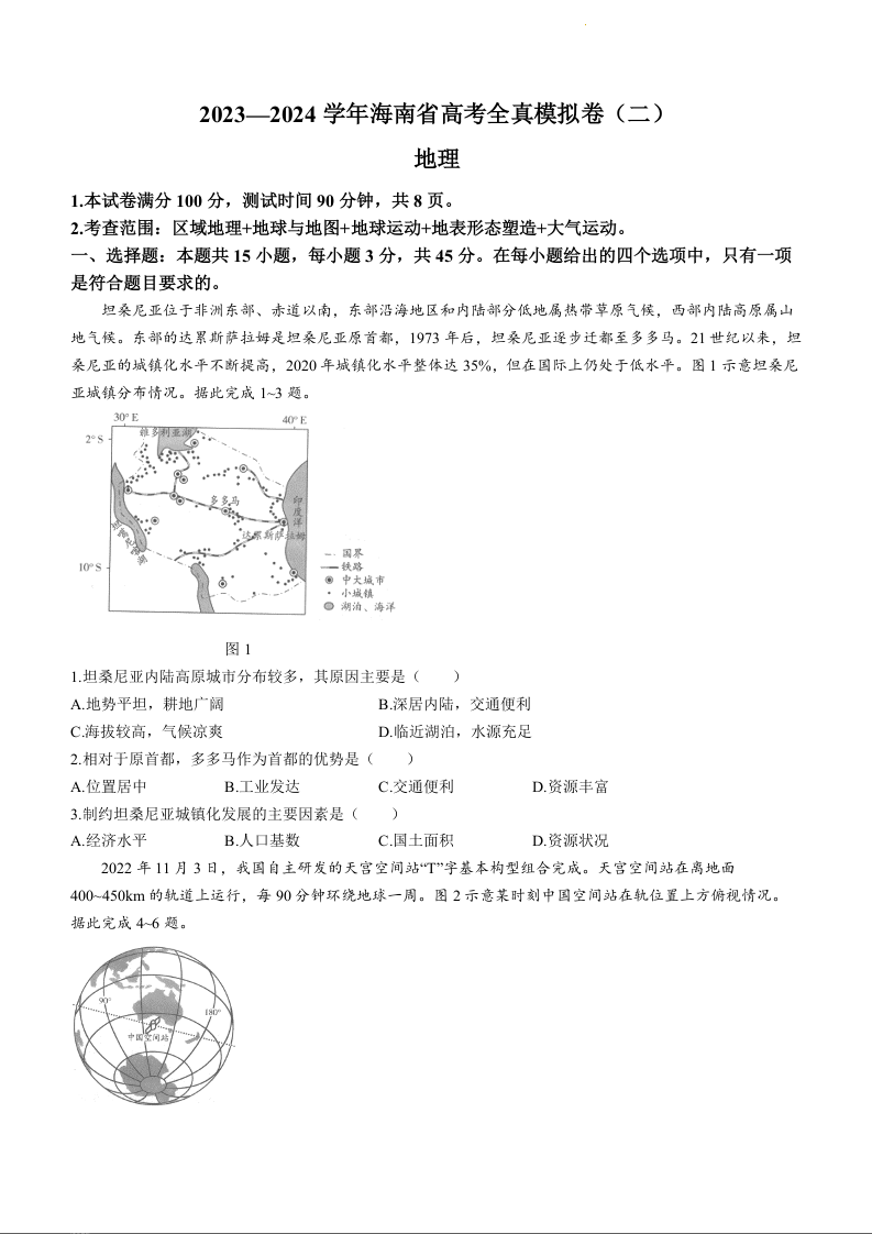 海南省2024届高考全真模拟卷(二)地理+答案