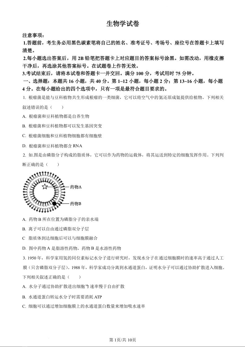 贵州省贵阳市第一中学2024届高三上学期高考适应性月考(二)生物(原卷版)