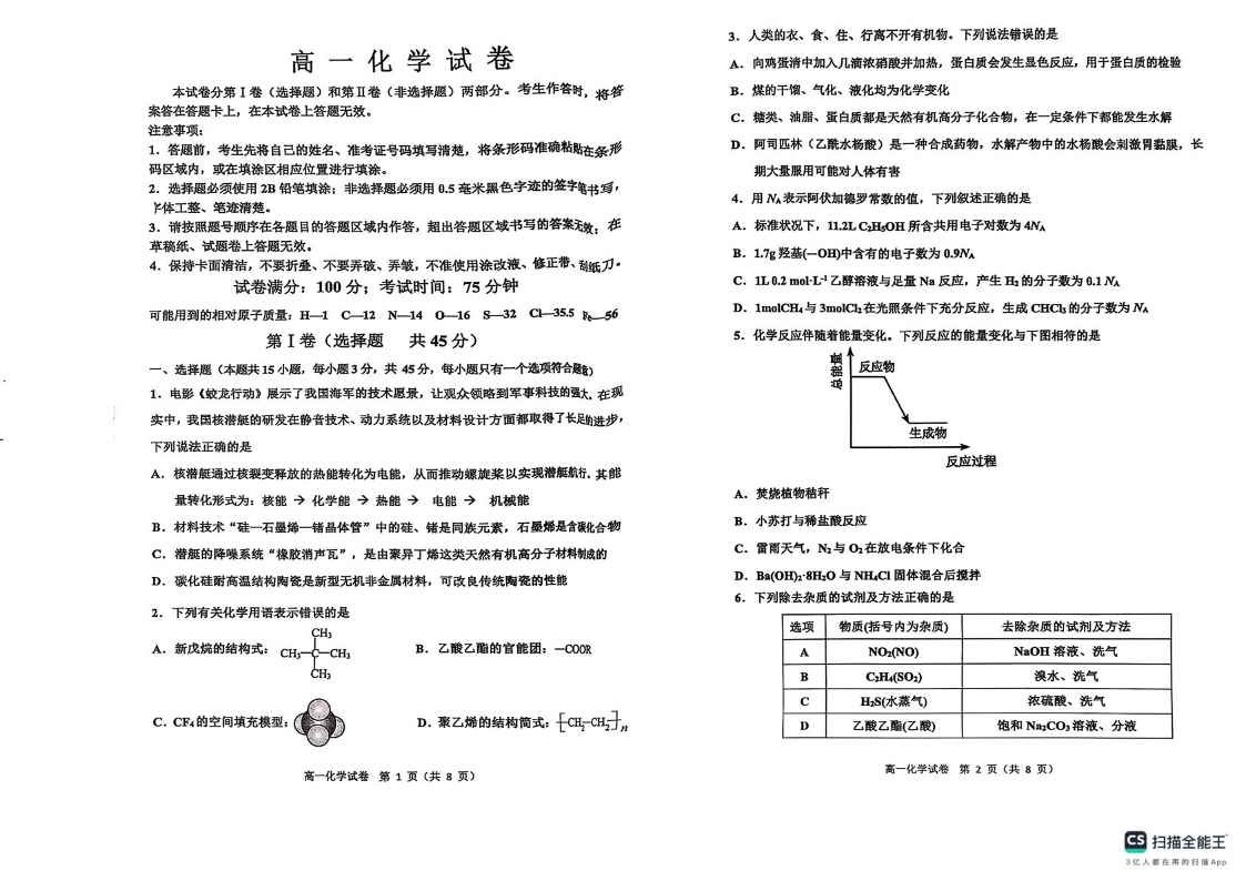 高一化学--黑龙江省黑河市龙西北名校联盟2024-2025学年高一下学期7月期末考试
