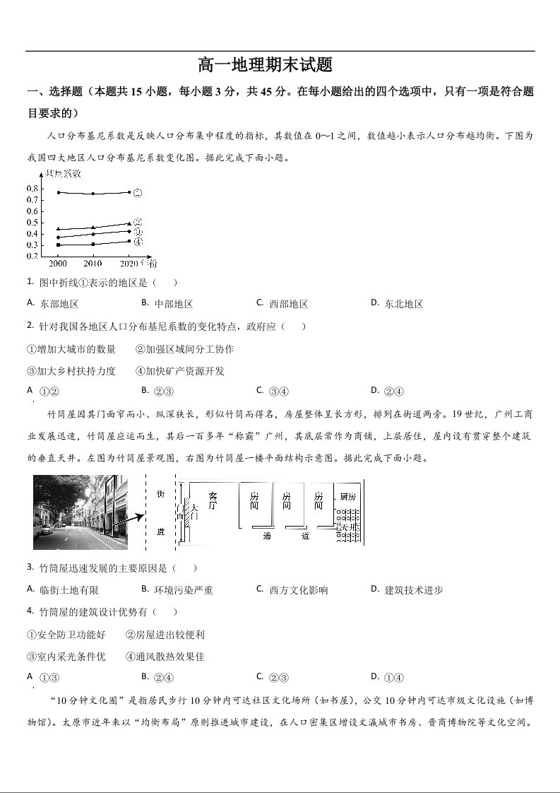 高一地理+答案--吉林省通化市梅河口市第五中学2024-2025学年高一下学期7月期末考试