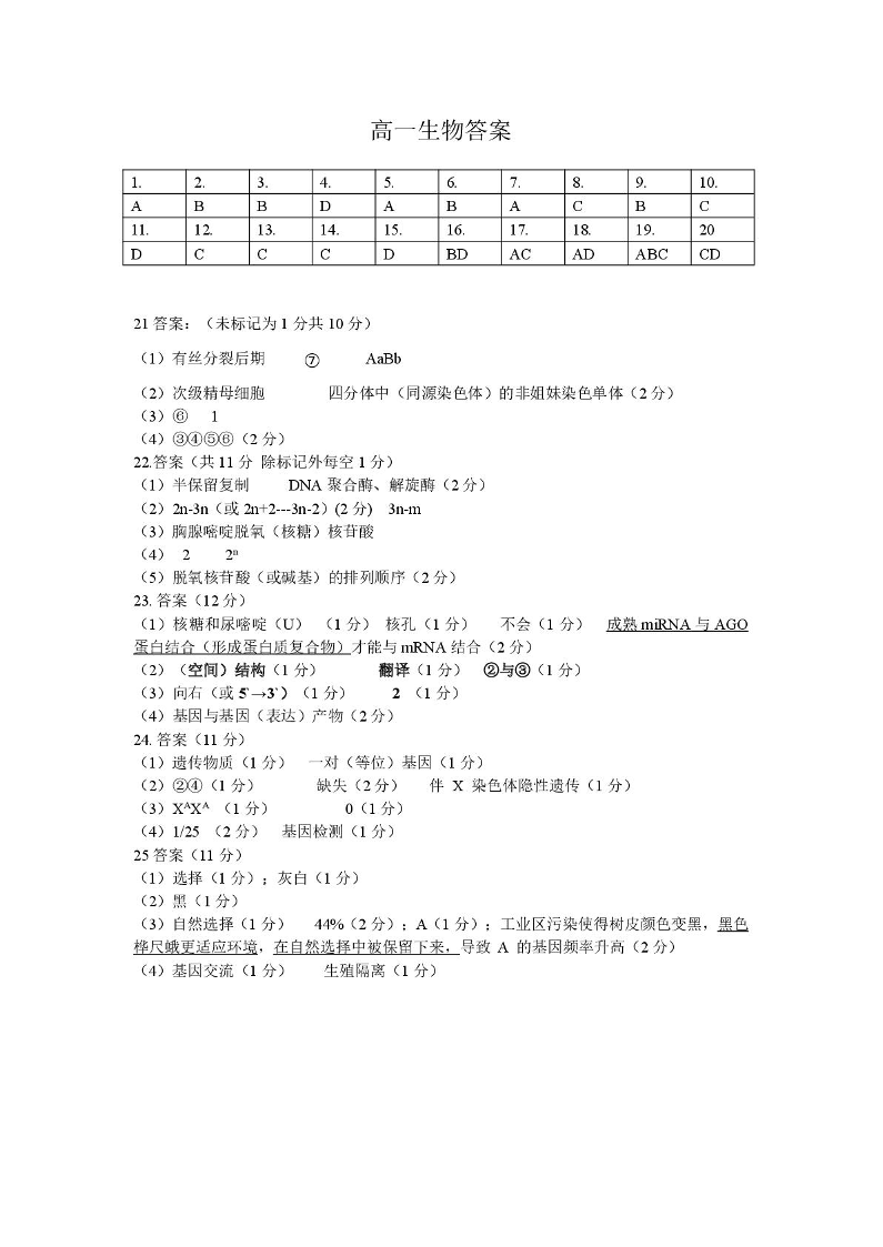 高一生物答案--辽宁省丹东市2024-2025学年高一下学期期末教学质量监测