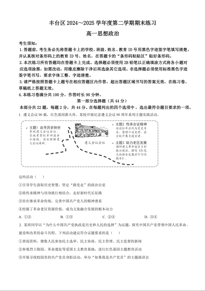 高一政治+答案--北京市丰台区2024-2025学年高一下学期期末