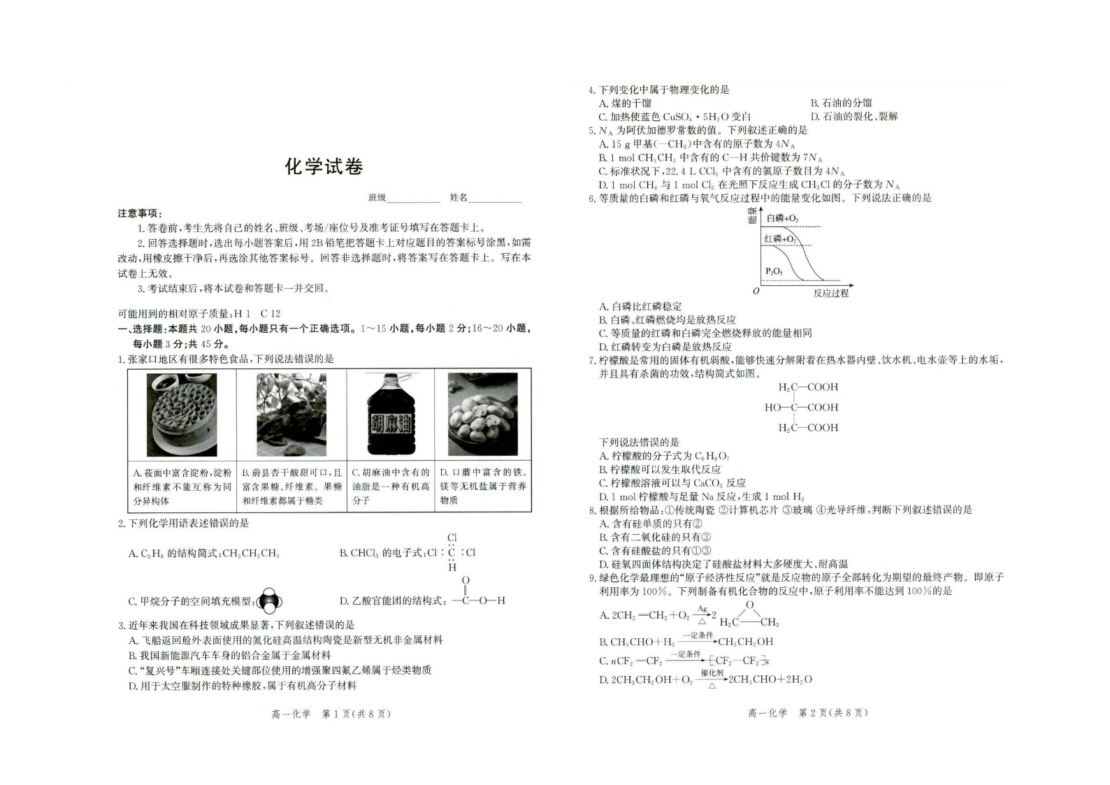 高一化学+答案--河北省雄安新区雄安十校2024-2025学年高一下学期期末考试