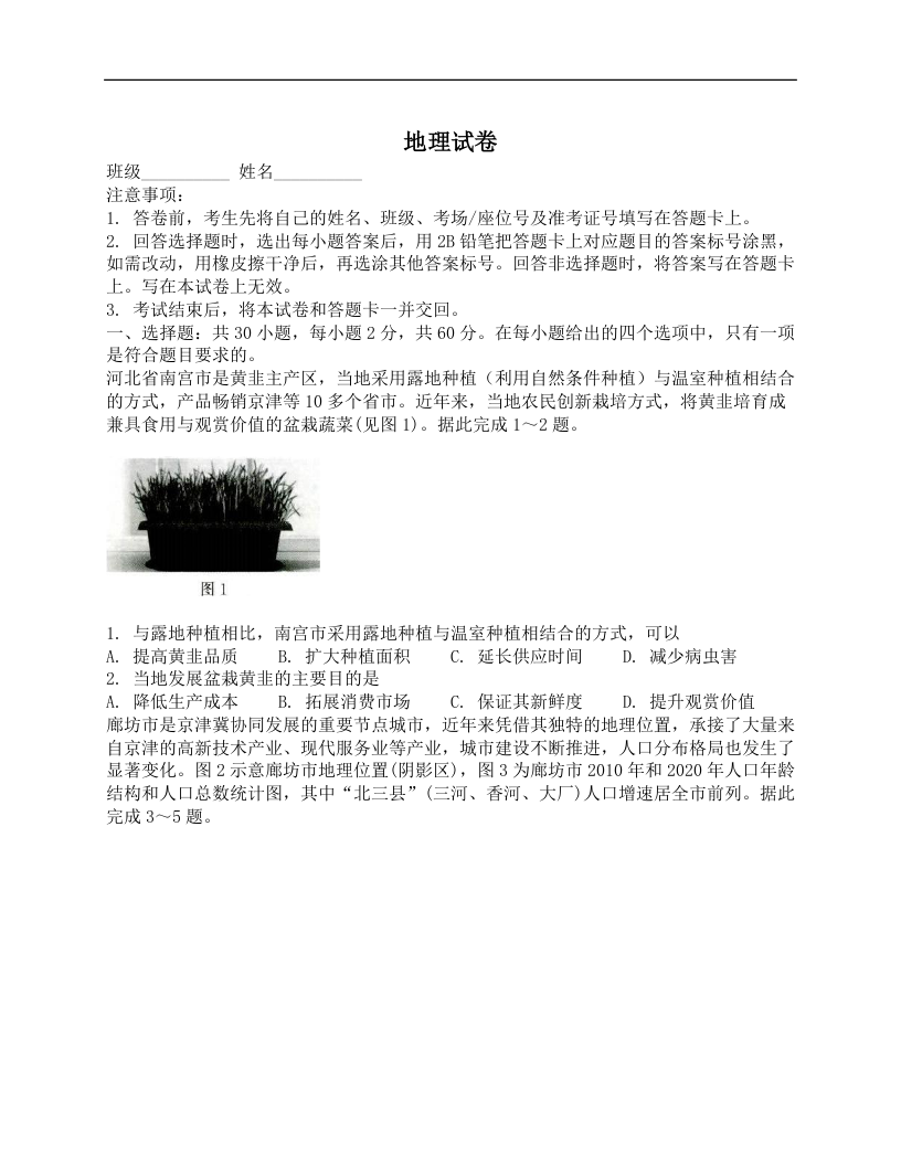 高一地理+答案--河北省雄安新区雄安十校2024-2025学年高一下学期期末考试