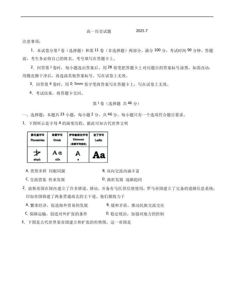 高一历史+答案--山东省滨州市2024-2025学年高一下学期期末考试
