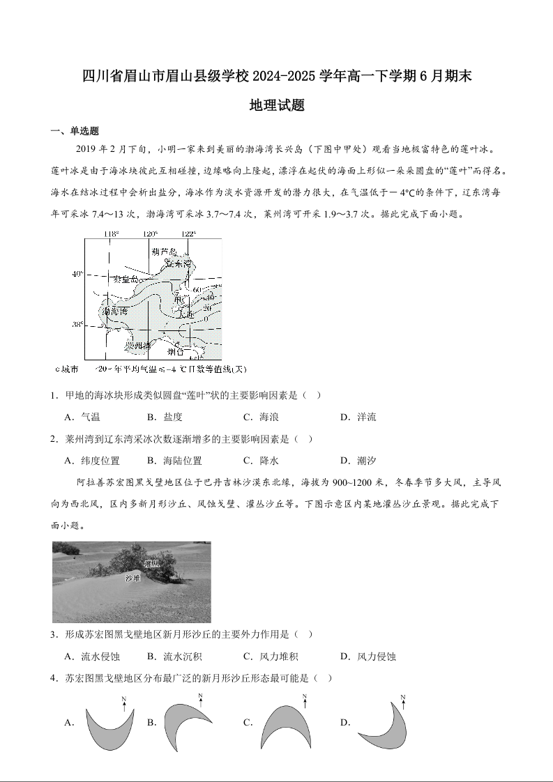 高一地理+答案--四川省眉山市县级学校2024-2025学年高一下学期期末联考