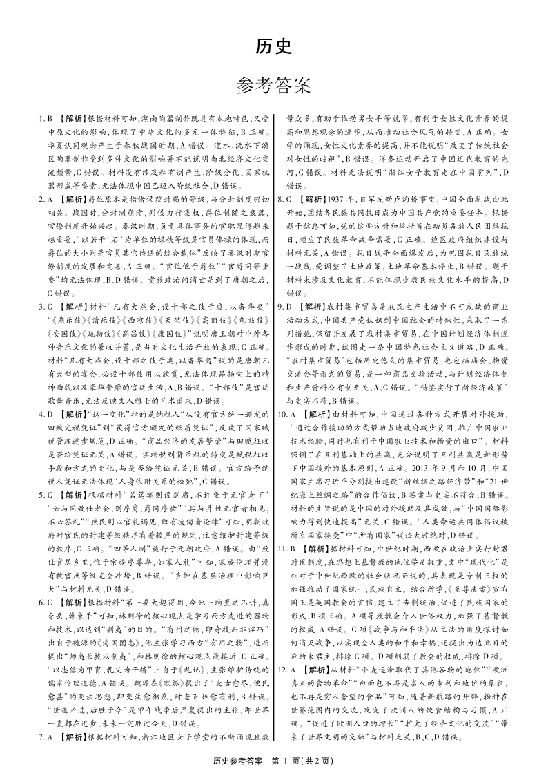 广西省2024届高中毕业班第一次摸底测试历史答案