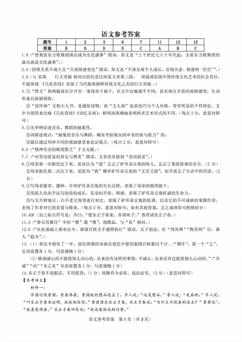 安徽省皖江名校2024届高三10月阶段性考试语文答案