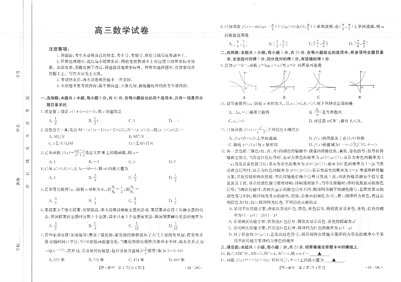辽宁省2024届金太阳高三上学期开学摸底考试(24-18C)数学