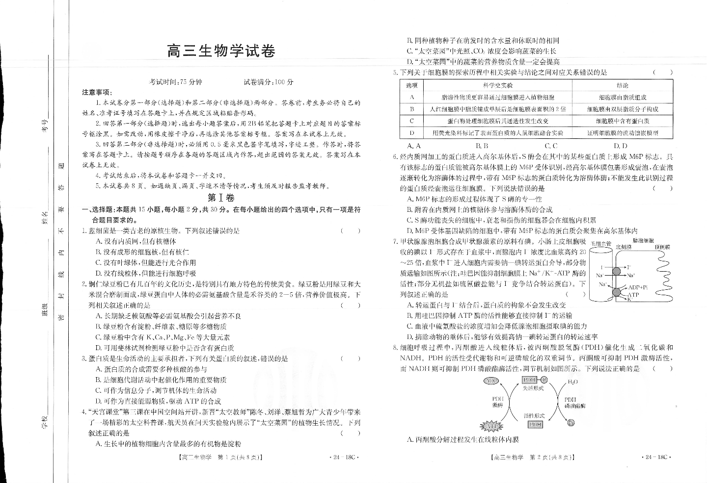 辽宁省2024届金太阳高三上学期开学摸底考试(24-18C)生物