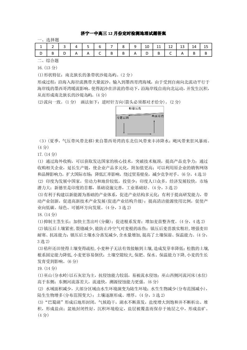 山东省济宁市第一中学2024届高三上学期12月月考地理答案