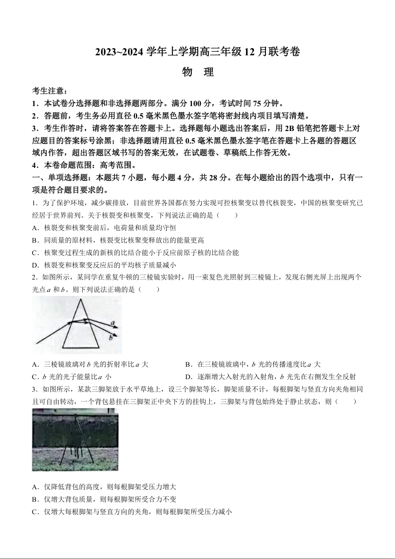 辽宁省朝阳市建平县2024届高三上学期12月联考物理