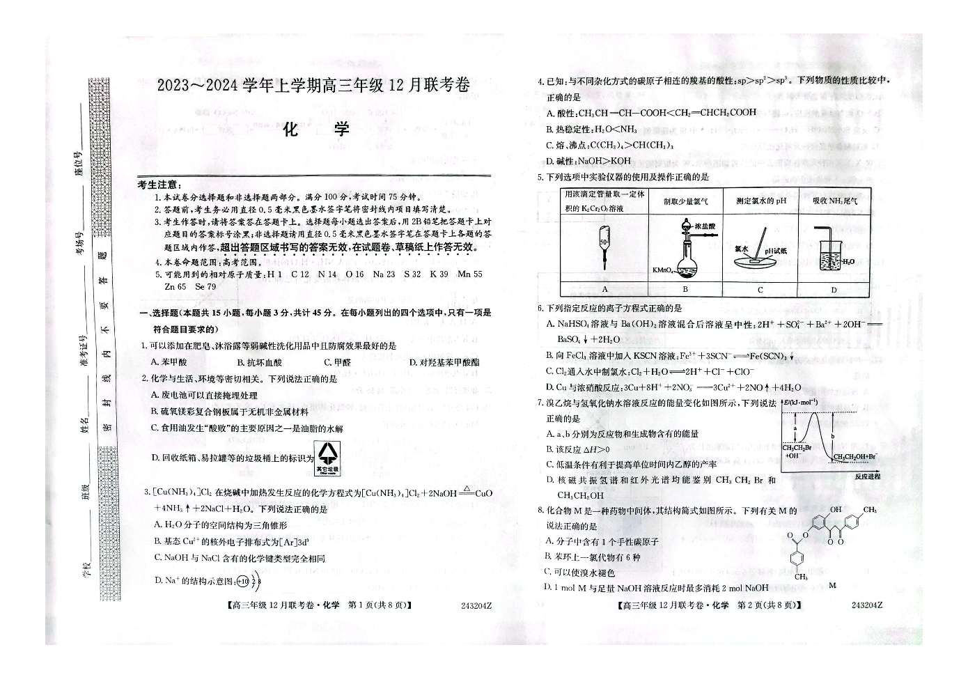 辽宁省朝阳市建平县2024届高三上学期12月联考化学