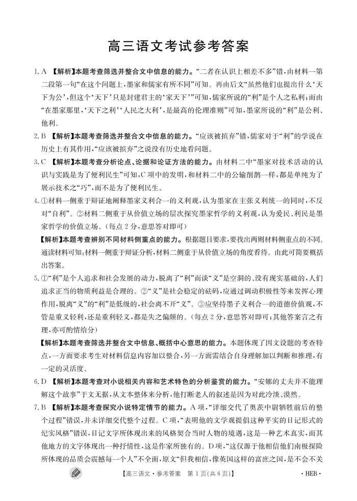 重庆好教育联盟2024届高三金太阳9月开学联考语文答案