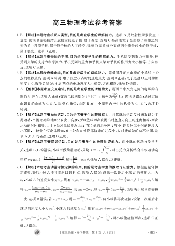 重庆好教育联盟2024届高三金太阳9月开学联考物理答案