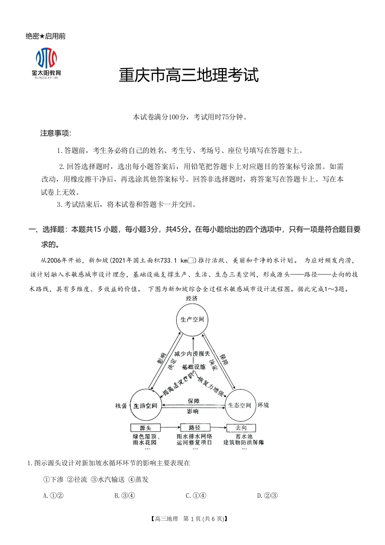 重庆好教育联盟2024届高三金太阳9月开学联考地理