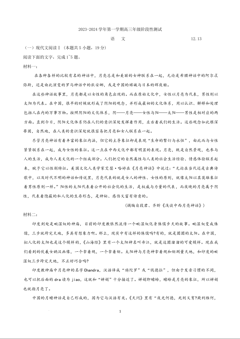 江苏省无锡市四校2024届高三上学期12月学情调研试卷语文+答案